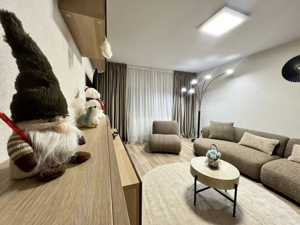 Livingul devine punctul central al locuinței - un spațiu aerisit și luminos, în care canapelele ergonomice, fotoliile cu linii curbe și covorul premium se armonizează într-un decor echilibrat. Mobilierul suspendat și iluminatul bine gândit completează acest cadru, transformându-l într-un loc ideal pentru relaxare.