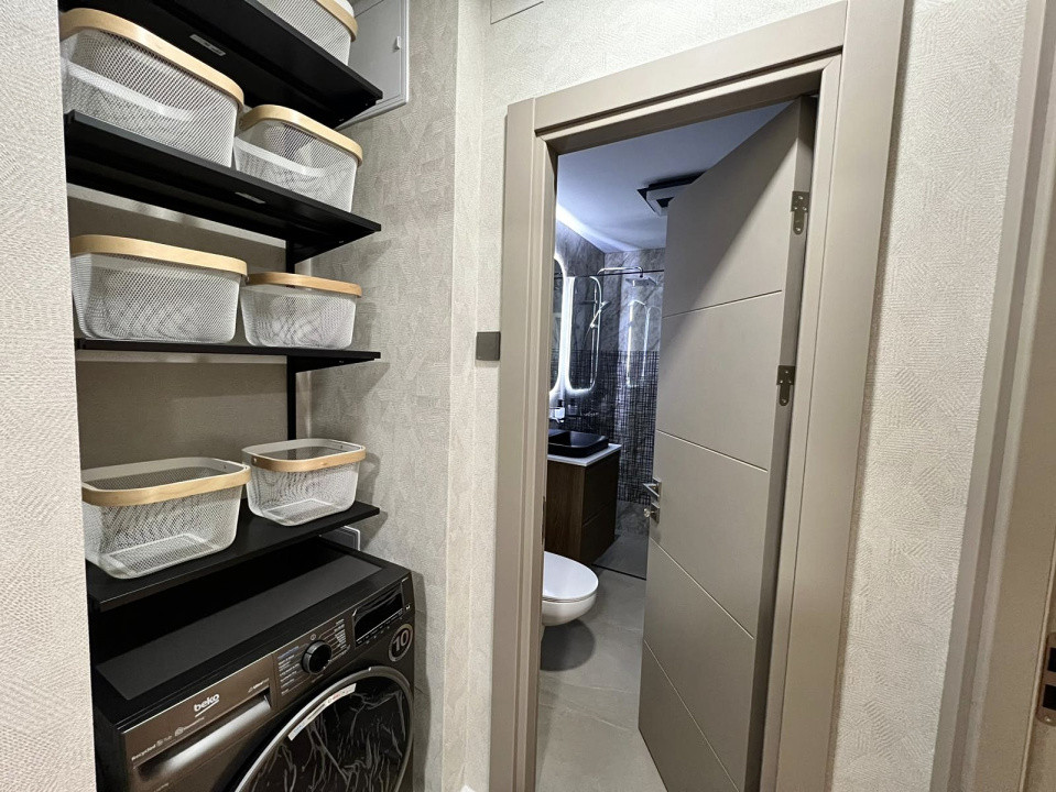 Bucătăria este echipată cu obiecte Grohe, iar centrala Viessmann oferă eficiență și stabilitate termică în orice sezon. Apartamentul dispune de aer condiționat, pentru un plus de confort cotidian.