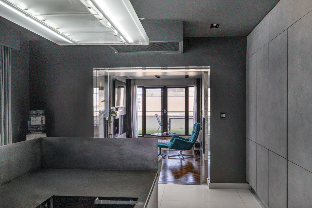 Odată pășit în interior, descoperi un spațiu proiectat integral sub îndrumarea unui designer de interior, cu o coerență stilistică remarcabilă în fiecare detaliu – de la volumetrie și lumină, până la texturi și materiale.